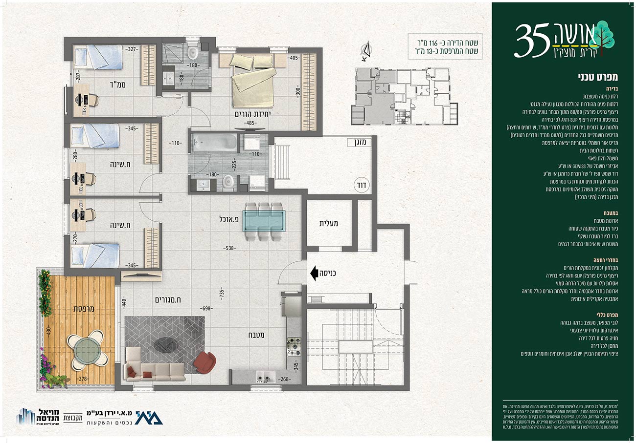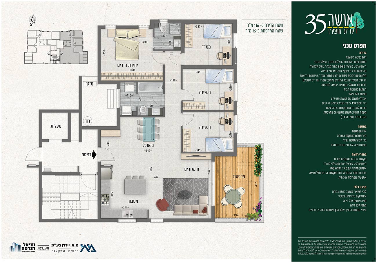 A new and prestigious boutique project, with a design emphasis on ensuring maximum privacy in an attractive location. The project is intended for long-term rental within the framework of the Capital Investments Encouragement Law. The project is a new independent 6-story building with a constructed area of approximately 1,250 square meters, which includes 9 units with an average area of approximately 120 square meters. The building is located in the heart of old Kiryat Motzkin, on a quiet street close to the main commercial avenue – Goshen Street. The building is built to an especially strict construction standard and will attract high quality residents, seeking to enjoy a better lifestyle.